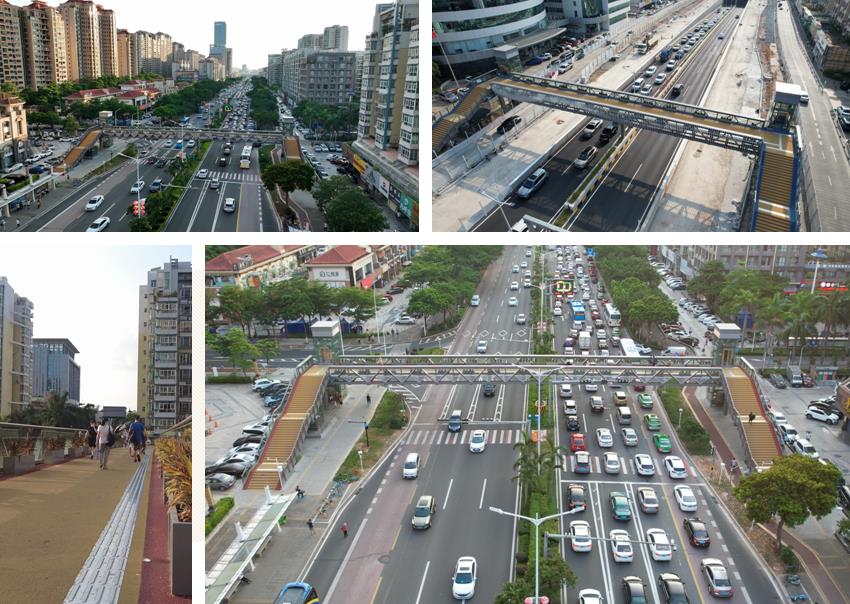 天橋采用鋁合金桁架結構,U字型2梯道+ 2臺電梯,總用鋁量約90噸